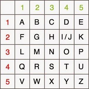 Trata-se de um dispositivo inventado pelos gregos Cleoxenus e Democlitus e aperfeiçoado por Polybius, cujo propósito era dividir os símbolos do texto plano para que pudessem ser representados por um conjunto menor de símbolos. Inicialmente, Polybius sugeriu que os símbolos poderiam ser usados para transmitir mensagens com pares de tochas. Além disso, também foi usada na forma de "knock code" para transmitir mensagens em prisões a partir de barulhos em canos e paredes.