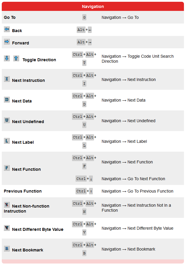 Link do Cheatsheet completo: https://ghidra-sre.org/CheatSheet.html